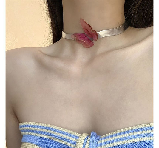 Butterfly Choker Leather Faux