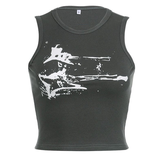 Guitar Print Ribbed Top