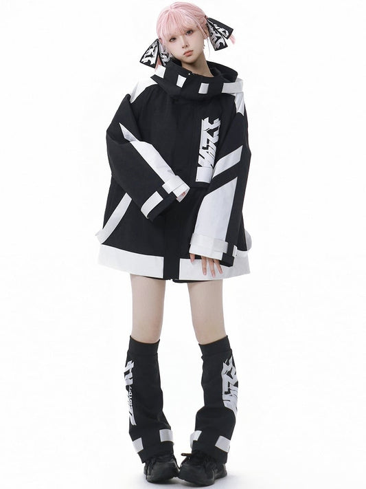 Black and White Colorblock Cyberpunk Sweatshirt
