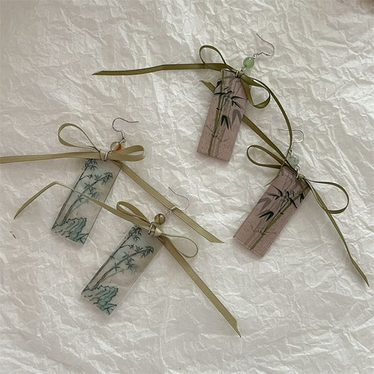 Earring Ribbon Bamboo Acrylic Drop