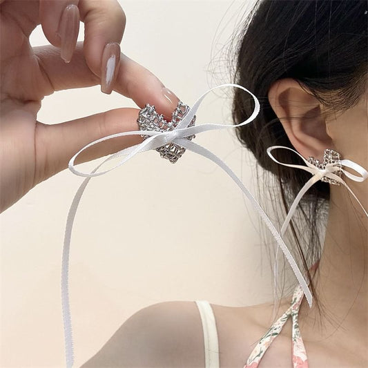 Stud Alloy Earring Heart Ribbon