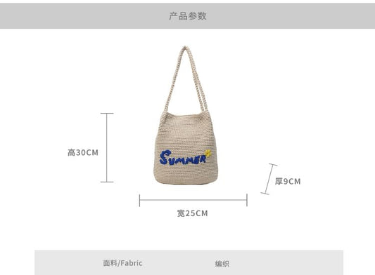 Lettering Embroidered Woven Bucket Bag