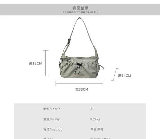 Letter Embroidered Drawstring Crossbody Bag