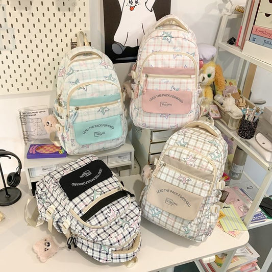 Cartoon Print Multi-Pocket Backpack / Bag Charm / Set