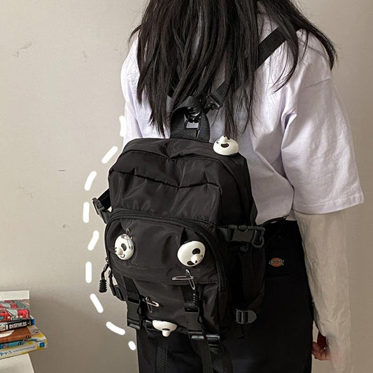 Black Panda Pin Backpack Crossbody Bag