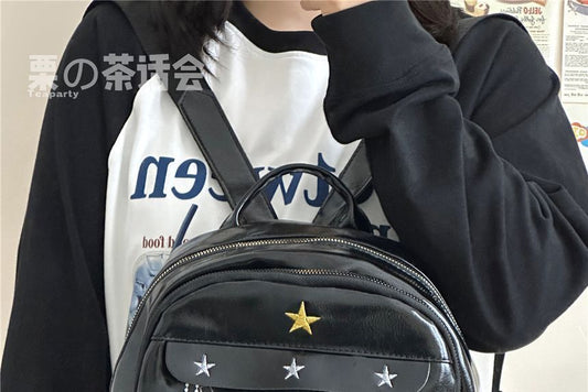 Letter Embroidered Zip Detail Backpack / Charm / Set