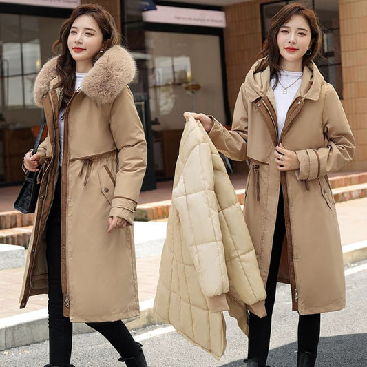 Long-Sleeve Tie-Neck Plain Midi A-Line Dress