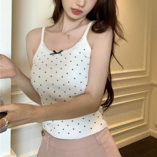 Dotted Lace Trim Bow Camisole Top