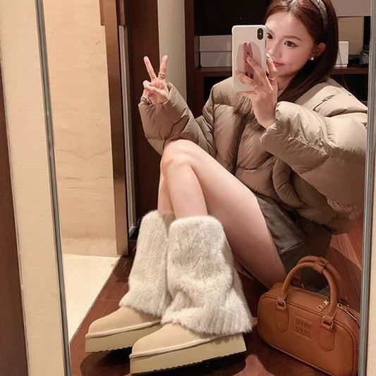 Faux Boots Platform Tall Leather Plain Zip-Up