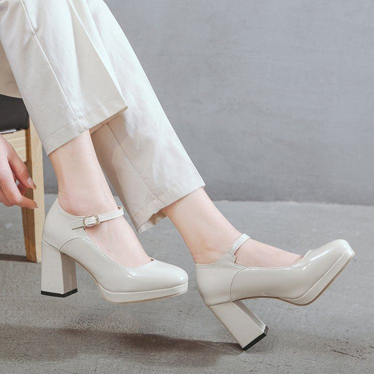 Pumps Chunky Heel Strap Cross Jane Studded Bow Platform Mary
