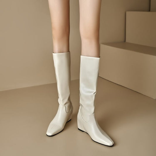 Over The Platform Suede Boots Button Buckled Knee Faux