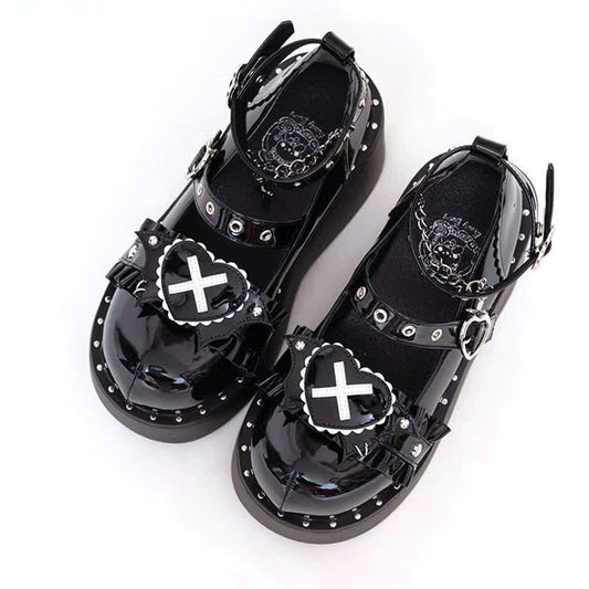 Sweet Punk Cross Love Heart Chain Strap Buckle Platform Shoes