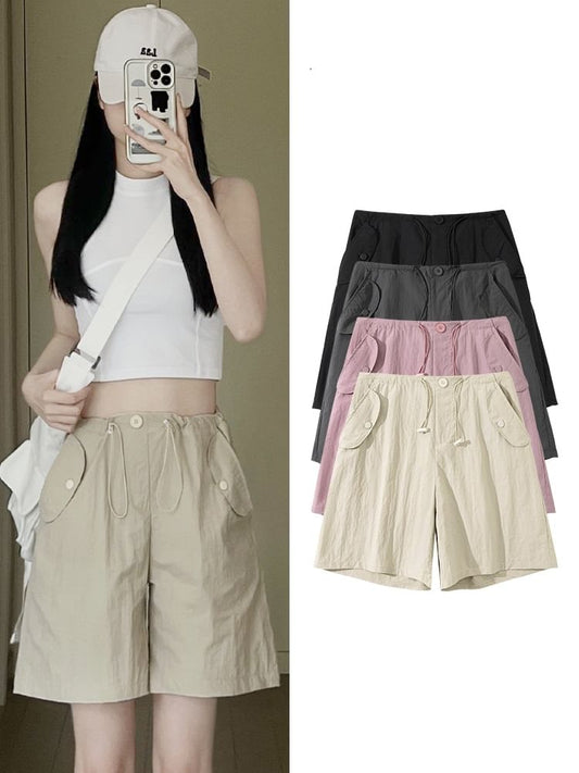 High Rise Pocketed Wide Leg Plain Cargo Shorts