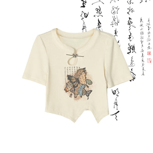 Vintage Butterfly Print T-Shirt Painting Pleated Skirt