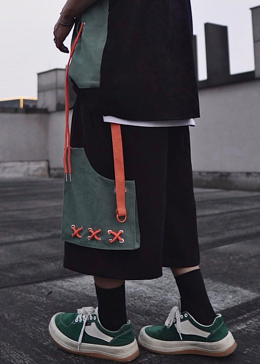 Khaki Pockets High Waist Letter Crop Pants Summer Art Mens