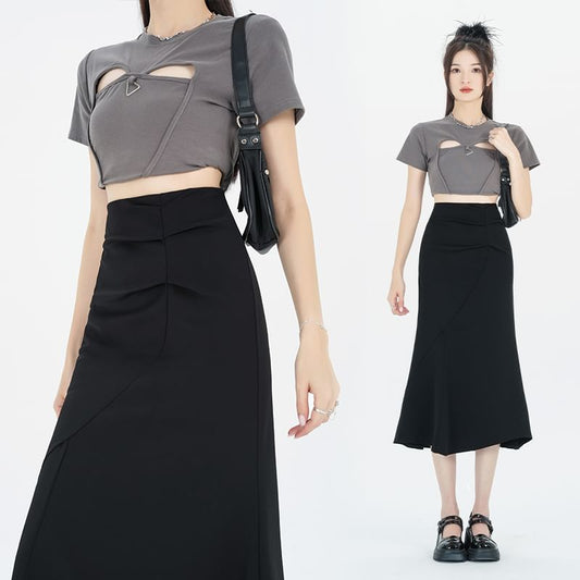 Ruched Waist High Skirt Plain Fishtail Midi
