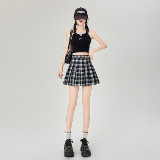 Pleated Skirt Waist Maxi Plain High Accordion A-Line