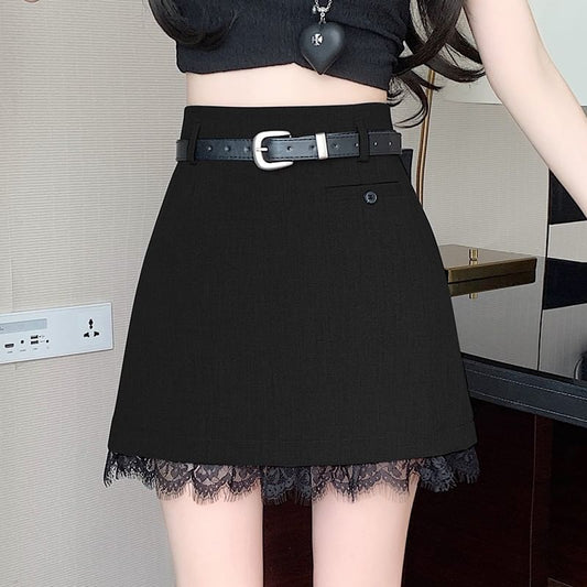 Plain A-Line Rise Skirt Lace Trim Mini High