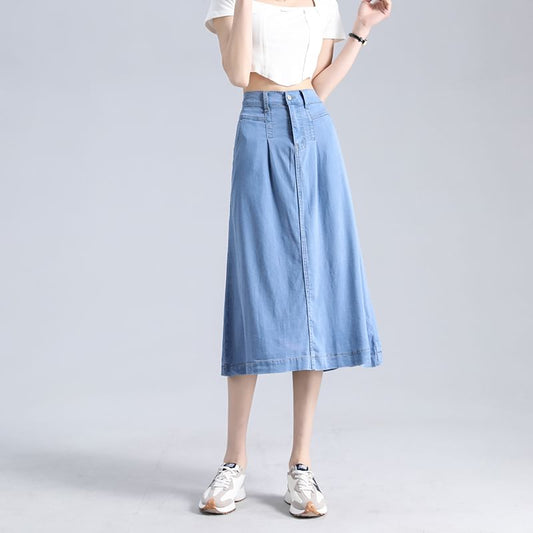Asymmetrical Plain High Skirt Straight Maxi Waist