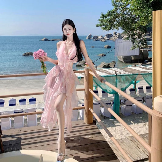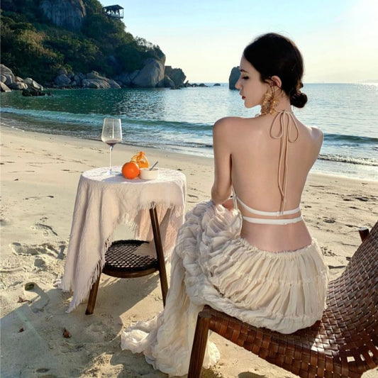 Maxi Cami Crop Set: Halter Plain A-Line + Top Rise High Skirt Neck