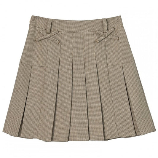 Beige High Waist Sweetheart Bow Accents Lace Trim Midi Skirt