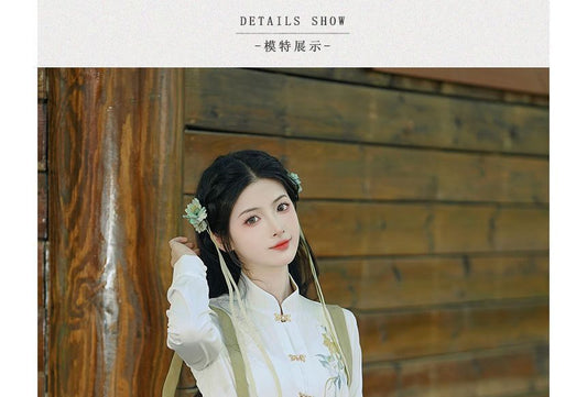 Long-Sleeve Embroidered Shirt / Maxi Pinafore Skirt / Set