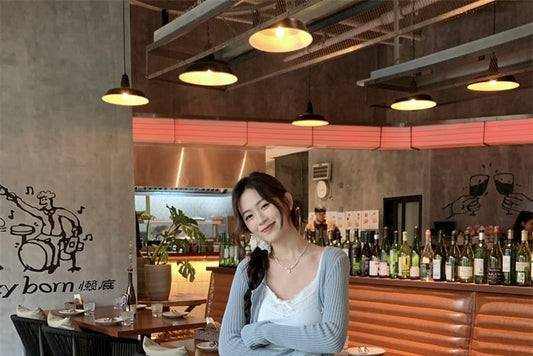 Plain Cardigan / V-Neck Camisole Top / High Waist Ruffle Maxi A-Line Skirt