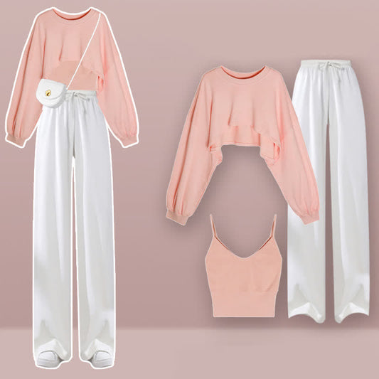 Sweet Tank Top Sweatshirt Casual Pants Set