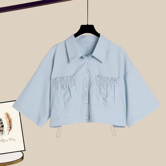Bow Round Collar Bowknot Crop T-Shirt Irregular Skirt