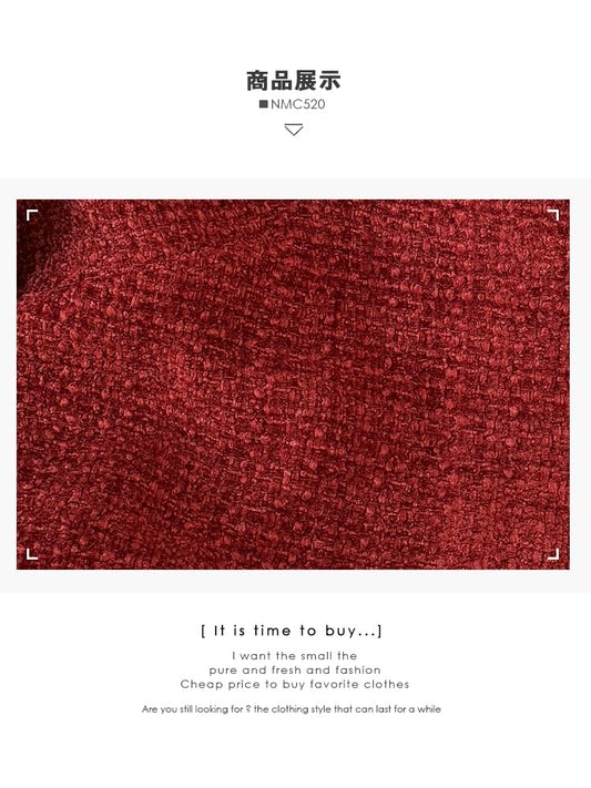 Set: V-Neck Plain Button-Up Tweed Crop Jacket + High Waist Pencil Skirt (Various Designs)
