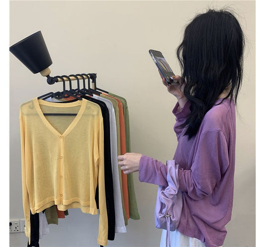 Oversized Bubble-Sleeve V-Neck Cardigan
