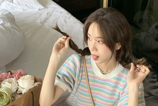 Short-Sleeve Square Neck Plain Ribbed Slim Fit T-Shirt