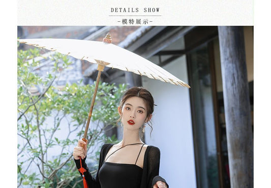 Set: Plain Crop Cardigan + Spaghetti Strap Midi A