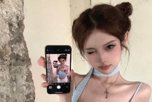 Scoop Neck Plain Bow Accent Crop Cami Top / High Rise Lace Panel Mini A