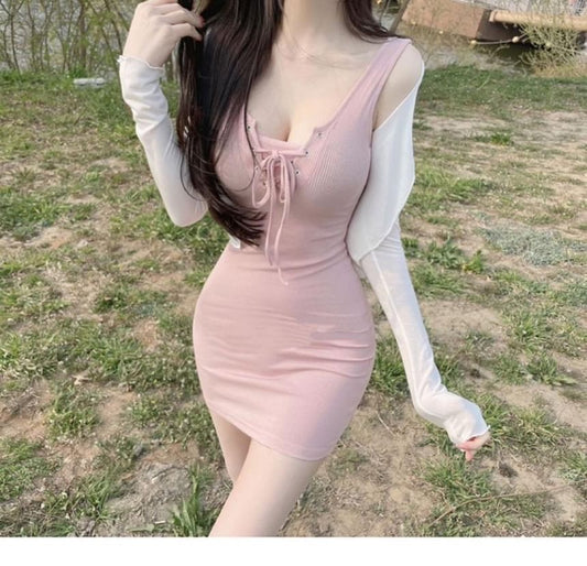 Mini Lace-Up Plain Sleeveless Dress Bodycon