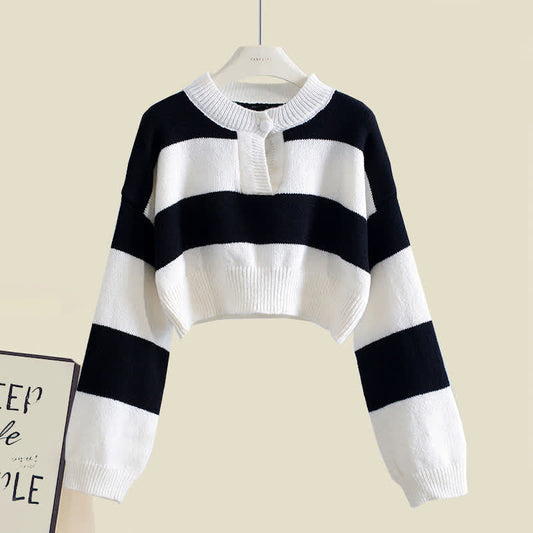 Cross Knit Sweater Belted Lace Slip Dress Set