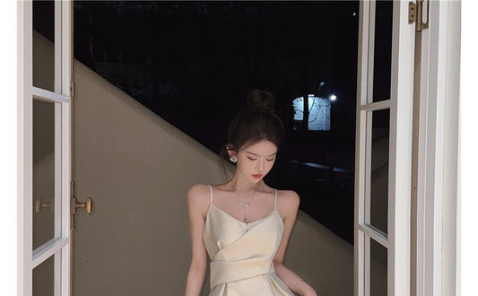 Plain Dress Strap Midi Spaghetti Slim-Fit