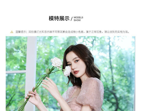 Designs) A-Line (Various Puff-Sleeve Embellished Dress Bow Prom