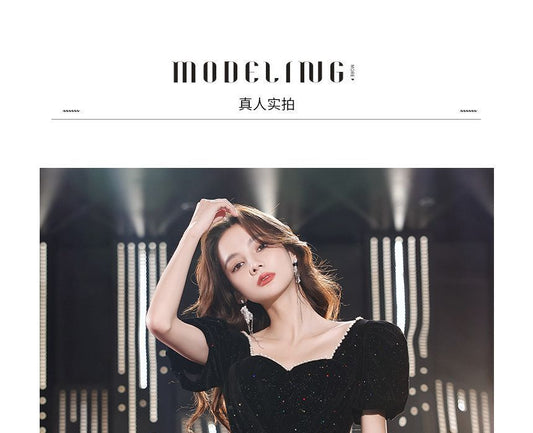 Neckline Prom Beaded (Various Dress Puff-Sleeve Sweetheart Designs) Trim Glitter