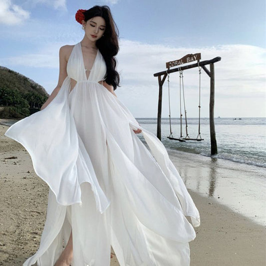 Lace-Up Sundress Plain Maxi Spaghetti Back Open Strap