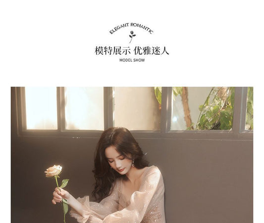 Glitter (Various Long-Sleeve Square Embellished Neck Dress Cocktail Mesh Designs)