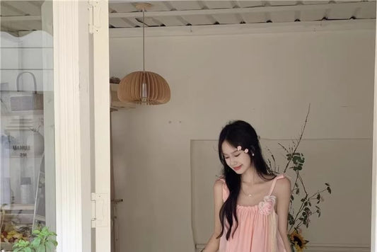 Spaghetti Plain Maxi Detail Flower Sundress Strap