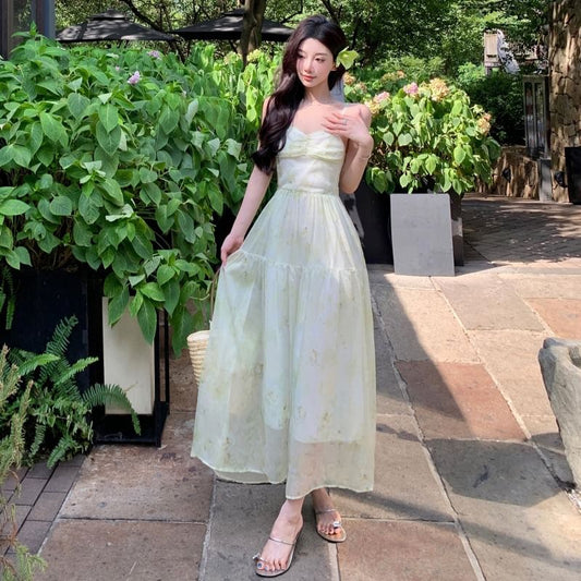 Spaghetti Floral Dress Strap Mermaid Maxi