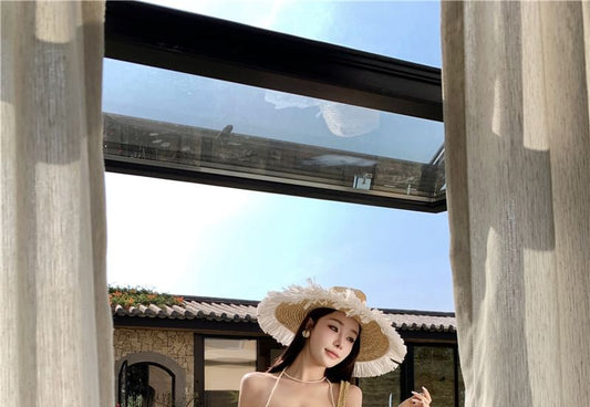 Detail Flower Ruffle Mini Halter Sundress Plain