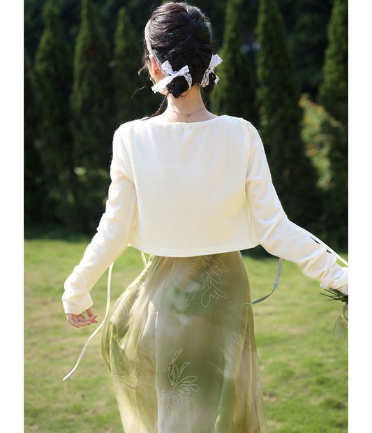 Spaghetti Strap Print Midi Tiered Dress / Plain Cardigan / Set