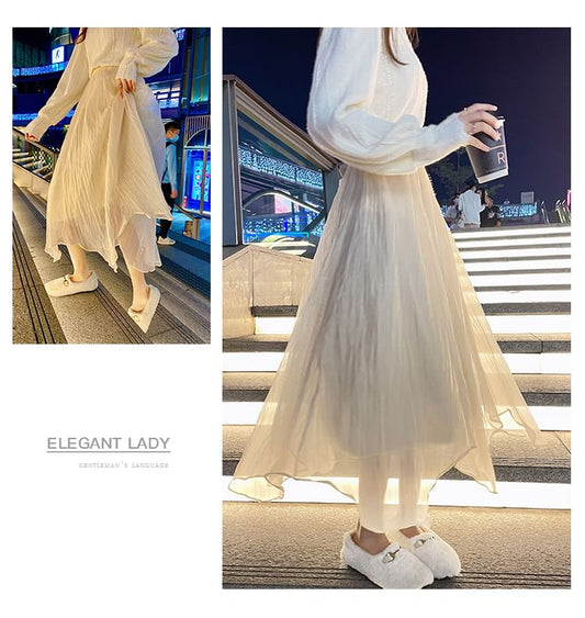 Set: Spaghetti Strap Tie Dye Pleated Midi A