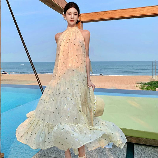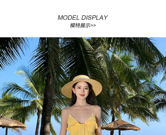 Spaghetti Strap Plain Ruffle Trim Maxi A