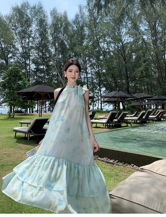 Spaghetti Strap Tie Dye Open Back Maxi A