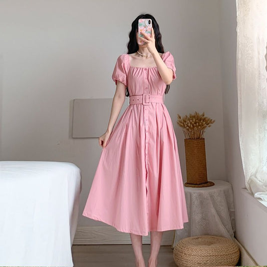 Puff Sleeve Square Neck Asymmetrical Corset A