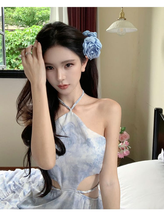 Halter Neck Backless Tie Dye Print Maxi A